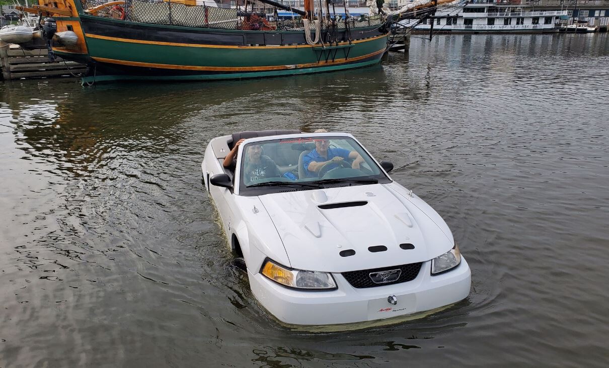 Muchos amantes de los coches sueñan con tener un Ford Mustang alguna vez en la vida. Pero Jim Eicher y su hijo, dueños de uno de los concesionarios Ford con más historia de EEUU, abierto desde 1904, han ido un paso más allá al construir el coche de sus sueños: un Mustang anfibio capaz de moverse como si nada tanto por tierra como en el agua.