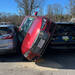 Parece un trofeo del videojuego 'Burnout' pero es real: la policía de Wellesley (Massachusetts) aún está investigando cómo pudo este Audi A4 quedar "aparcado" de esta guisa entre dos coches en el párking de un supermercado.