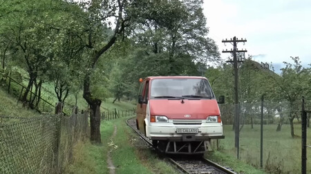 Siguen utilizándolas como atracción turística, pero los habitantes de la zona también se mueven por estas vías de otra forma aún más peculiar e ingeniosa: con viejas furgonetas modificadas, como una Ford Transit diésel de finales de los años 80.