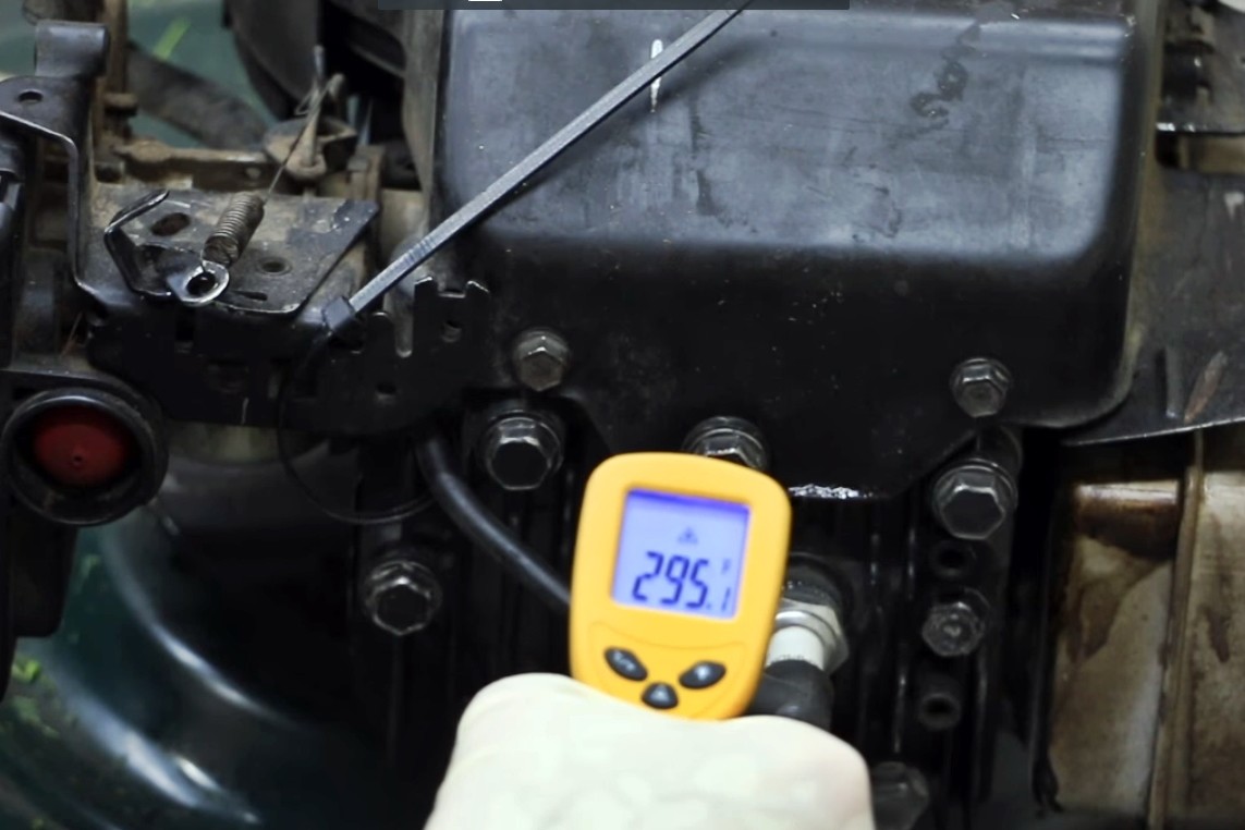 Nuestro amigo jardinero mide la presión en el interior de la cámara de combustión antes y después, y los resultados aparentemente no son demasiado concluyentes. De 68 Psi en frío pasamos a 65, y de 72 Psi en caliente a 73. Variaciones no especialmente relevantes a simple vista pero que no reflejan el estado interno del monocilíndrico.