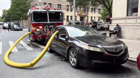 Por lo visto, lo de este Acura no es algo anecdótico y los bomberos parece que intenten escarmentar este tipo de prácticas tomándose ciertas licencias con bastante frecuencia. Solo hay que buscar en Google “car on hydrant” para encontrar decenas de imágenes con casos similares de mangueras que atraviesan coches para conectar el camión de bomberos con la boca de incendios.