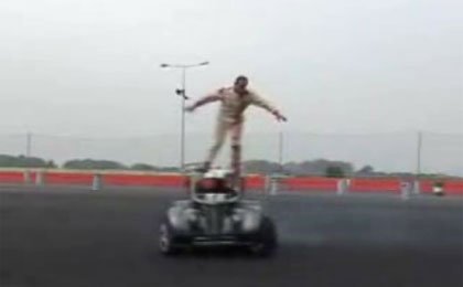 El piloto de aquella exhibición es Terry Grant, el mismo que demuestra hasta donde llegan sus haiblidades en este otro vídeo. El tio controla hasta fuera del coche. Impresionante.