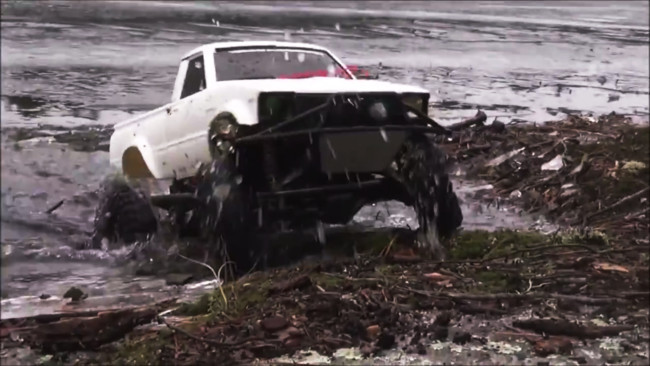 Total, que han tenido que pasar los años para que mis ojos puedan ver la simbiosis perfecta en forma de una Toyota Hilux de radiocontrol que, además, es capaz de rodar bajo aguas heladas y seguir adelante como si tal cosa. El mérito se lo lleva un Axial SCX10 cuyos conectores eléctricos aguantan lo que se les eche. Y para muestra, un botón (el del play):
