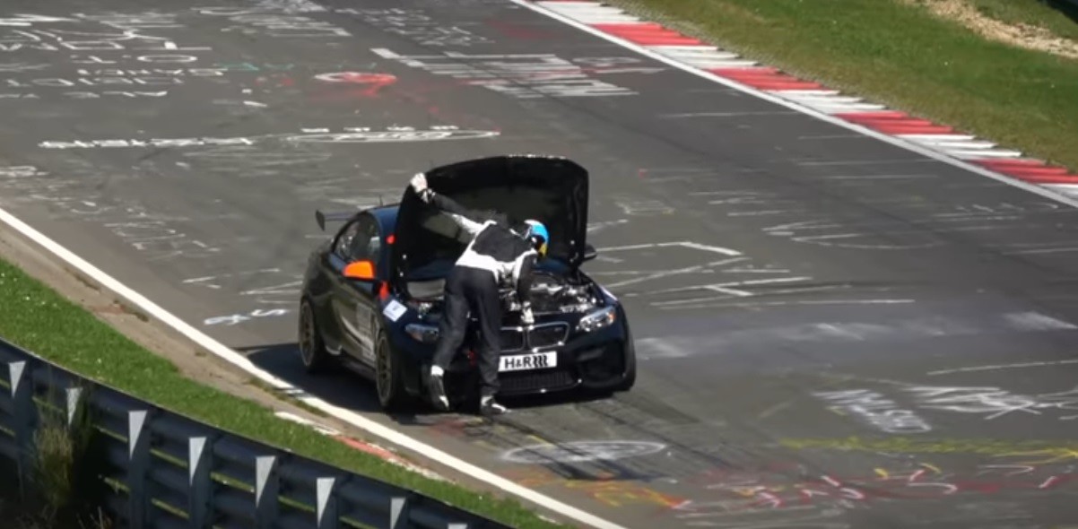 En la última carrera de las VLN, la segunda de la temporada, el coche número 153, un BMW M2 de la clase SP8T, se quedó parado en pista. Su piloto en vez de esperar a que llegase el coche de seguridad para recibir ayuda, salió del coche, abrió el capó, cruzó la pista en dos ocasiones e incluso aún en el asfalto, se quitó el casco ¡y se puso a llamar por teléfono!
