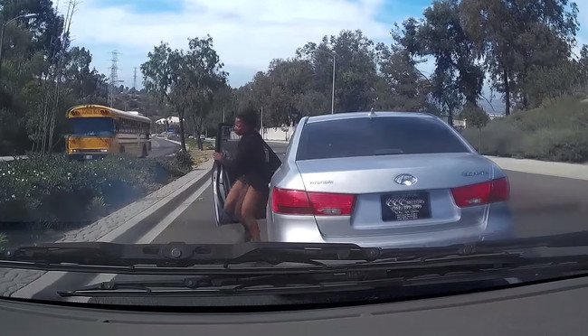 Esto que vamos a ver sucedió en Harbor Boulevard, una larga avenida de La Habra, que es una ciudad que queda unas 27 millas al sudeste de Los Ángeles (Estados Unidos). Si hubiera que argumentar lo sucedido, tardaríamos semanas en dar con una explicación razonable, así que lo vamos a dejar en una lista de hipótesis sobre los posibles motivos que desembocan en esta acción. La lista es ampliable por supuesto, aunque conviene saber que la protagonista, una joven de 22 años, fue detenida por la policía bajo la sospecha de conducir bajo los efectos de las drogas.