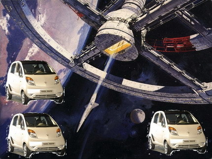 Lo que no habíamos visto es el momento de su presentación en el Salón de Nueva Delhi, con la música de 2001 Una odisea en el espacio, por la cual no he podido evitar hacer el montaje basado en un cartel de la película.