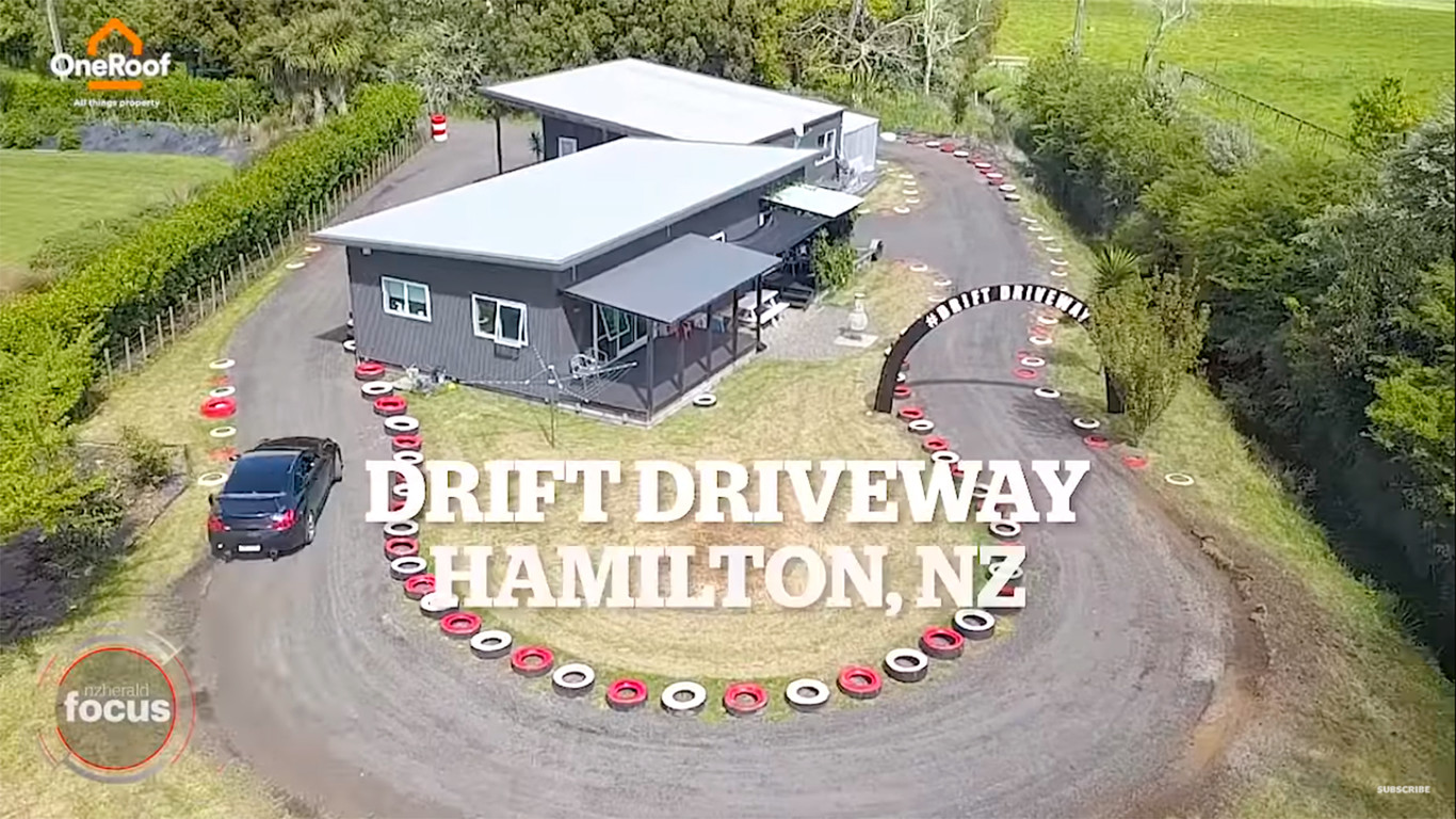 "El drifting es mi modo de vida. Es más que un hobby para mí", explica a la publicación neozelandesa. En las imágenes vemos como un gran anillo de asfalto rodea su casa, dejando muy poco espacio para disfrutar de las comodidades propias de un jardín, como una piscina o una barbacoa. Pero quién quiere esas banalidades mundanas cuando puede tener un circuito.