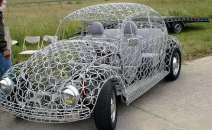 No sé si es porque aquí lleva todo el día lloviendo, pero ver este Volkswagen Bettle clásico con carrocería hecha con alambres me pone los pelos de punta.