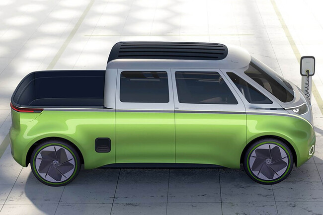 El ID Buzz pick-up es también una evocación de las antiguas pick-ups. La actual tendría todavía más capacidad de carga que su ancestro con un motor trasero refrigerado por aire que comía buena parte del volumen de carga posible.