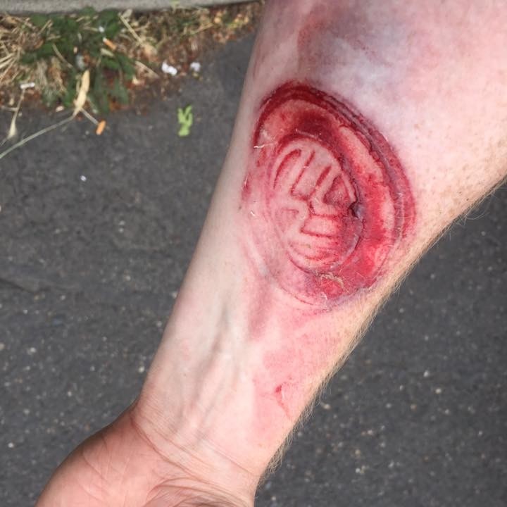 Sucedió en Portland (Oregón, Estados Unidos) el miércoles pasado, cuando circulando por la ciudad tuvo un choque con otro vehículo en un cruce. El airbag se abrió y en aquel momento pilló el brazo de Karl Whinnery por el camino. Y le dejó un recuerdo imborrable —aunque es de esperar que con el tiempo se le acabe curando.
