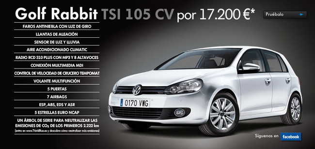 Ya vimos una edición especial Rabbit (conejo) con el motor TDI de 90 CV, y debió funcionar bien, porque vuelven a la carga. Ahora también pueden ser Rabbit los 1.2 TSI (105 CV) y 1.6 TDI (105 CV). Son como el Advance pero traen equipamiento gratuito y tienen un descuento promocional que ronda los 2.000 euros.