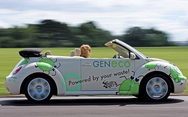 La empresa británica GenEco, en colaboración con BRC, han adaptado con éxito un Volkswagen New Beetle Cabriolet para funcionar con biogás. El motor elegido ha sido el 2.0 16v de 130 CV, que rinde prácticamente igual con gas que con gasolina. Lo que más huele de todo este asunto es el origen del combustible.