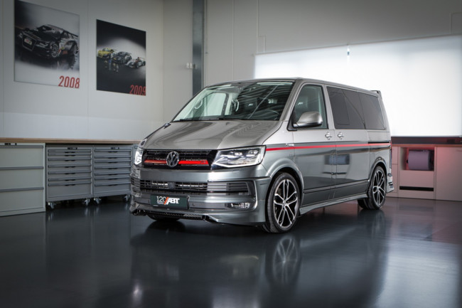ABT lo ha intentado con la nueva Volkswagen T6 y éste es el resultado, un kit compuesto por diferentes elementos de carrocería (como paragolpes, taloneras y alerón trasero, entre otras cosas), llantas y vinilos. En el apartado dinámico también hay cambios para mejorar las prestaciones, no sólo se ha buscado una estética diferente... Diferente pero que recuerda a una famosa GMC de la tele.