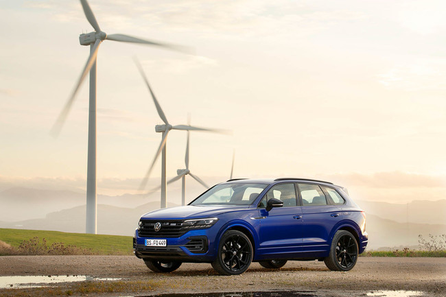 Para diferenciarlo del resto de la gama, el Touareg R luce un parachoques con tomas de aire hipertrofiadas, mientras que todos los elementos del frontal, como las tomas de aire o la calandra, son de color negro. Incluso los faros cuentan con una carcasa negra.